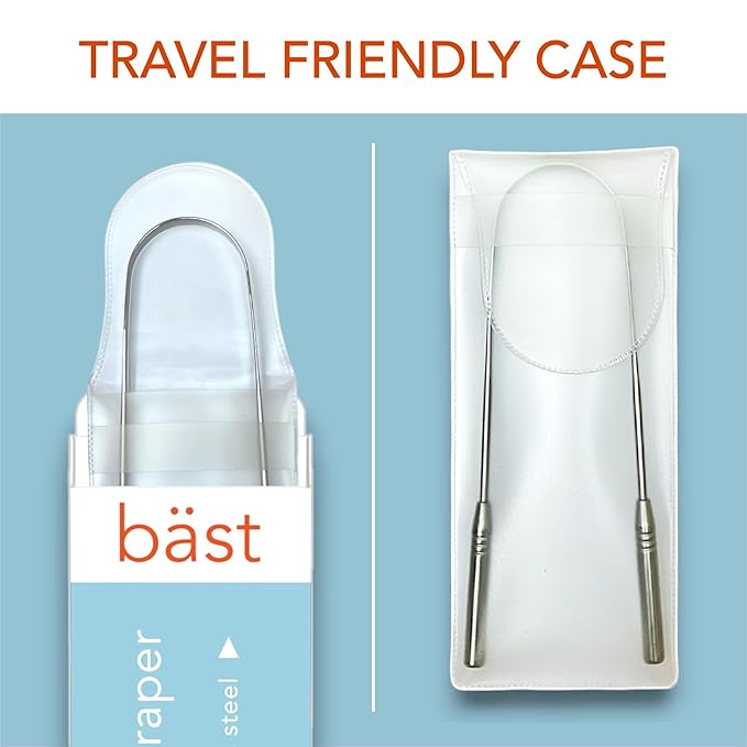 - ✔️ Quick & Easy To Use: Simply scrape along the top of your tongue ~4 times while rinsing off the edge in-between each scrape. Best to use in the morning and after meals to remove built up debris from the surface of your tongue