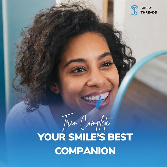- Complete oral hygiene set: This Trio Dental Care set includes double thread floss, tooth pick, and tongue scraper for a more thorough cleaning.