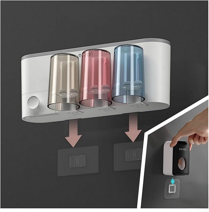 No-Drill Wall Mounted Toothbrush Holder,with 1 Automatic Toothpaste Dispenser (1 Dispenser)