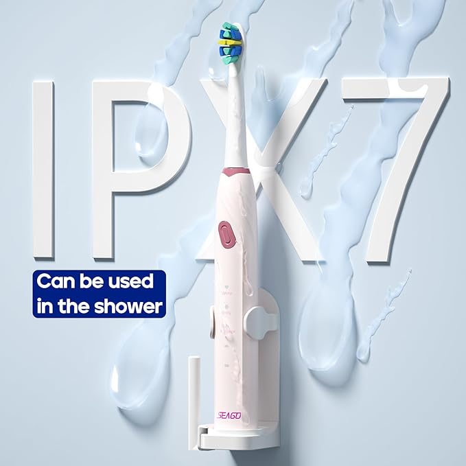 SEAGO Electric Toothbrush with 10 Brush Heads,Travel Toothbrush with Travel Case, Electric Tooth Brush with Smart Timer for Adults, Boys, and Girls,SG-2316(Pink)