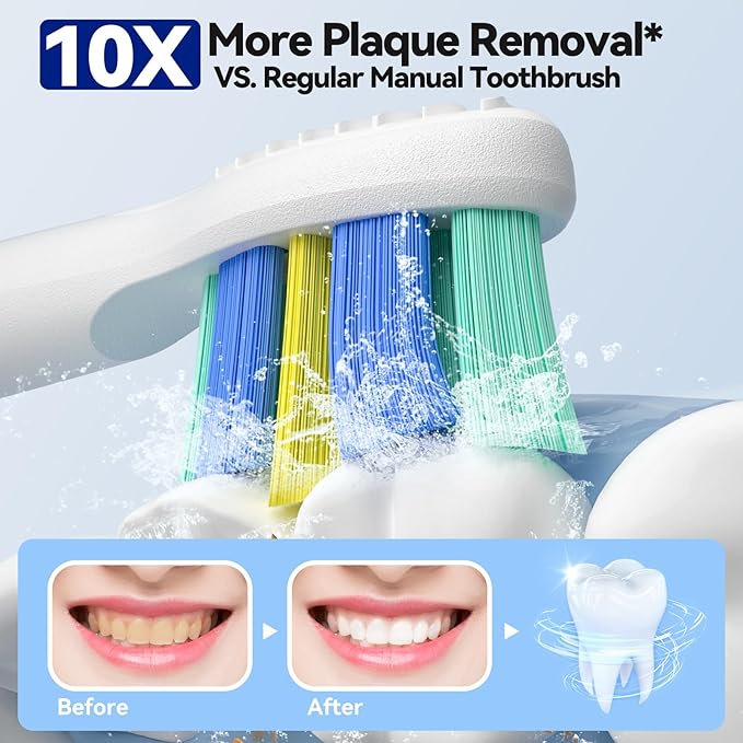 - Scientific Ergonomic Design: Our adult electric toothbrush with scientific ergonomic design handle,master the scientific brushing method easily.This electric toothbrush with 35,000 VPM,and 100% more plaque removal* vs. a regular manual toothbrush
