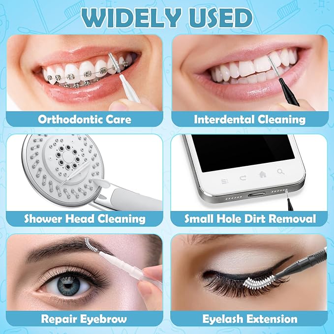 - 【More Uses】 Do not throw away used interdental brushes, you can also use them as shower head brushes to clean water nozzles, increase water flow, and maintain electronic devices such as phones, tablets, and small areas. Additionally, these brushes can be used as eyebrow brushes and eyelash brushes for precise shaping, extending eyelashes, and discovering more functions.