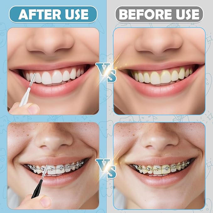 - 【Efficient Oral Cleaning】 The toothpick with bristles can be inserted directly between teeth, easily cleaning food residue and plaque that toothbrushes cannot reach. Greatly improve the efficiency of oral cleaning, helping teeth stay healthy and white. Using our interdental brushes before brushing can effectively prevent various oral problems, keeping you away from bad breath, dental plaque, tartar, yellow teeth, toothache, and cavities.