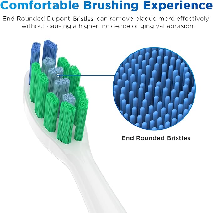 - COMFORTABLE BRUSHING EXPERIENCE: End Rounded Dupont Bristles can remove plaque more effectively without causing a higher incidence of gingival abrasion.