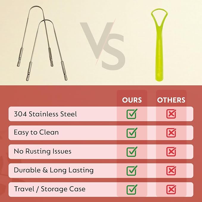- STAINLESS STEEL TONGUE SCRAPERS: Nature's Own Tongue scrapper Made from 100% Stainelss Steel , this Ayurveda-recommended tool supports oral health and better taste perception. Make This Tongue Scrapper as a regular Oral Care Tool.