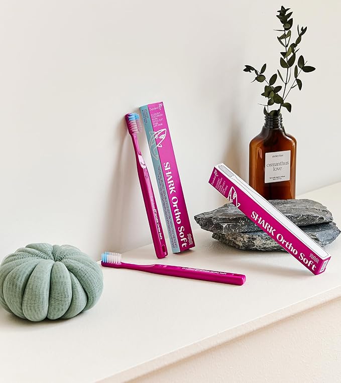 - ORTHODONTIC DESINE: U-shaped and V-cut heads specifically designed to clean along fixed braces. Brush caps included for hygienic storage. DURABLITY: Even with prolonged use, the bristles remain firm and do not splay. SOFTNESS: Shark Ortho Spiral is the softest toothbrush, ideal for those with newly installed braces or sensitive gums. Ortho Compact 20 Extra Soft is the second softest option.