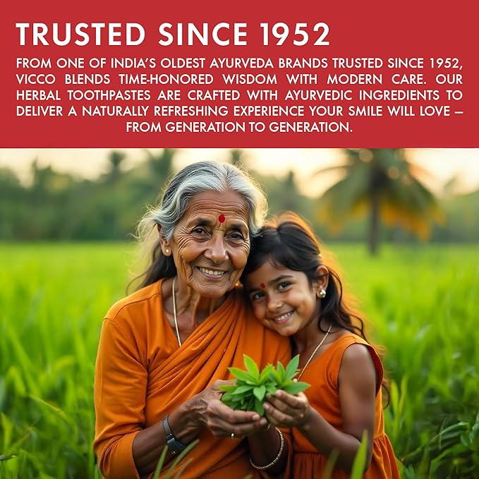 - 70+ Years of Ayurvedic Wisdom in Every Tube – Vicco stands as one of India’s oldest and most trusted Ayurvedic brands. This toothpaste represents a 7-decade tradition of natural care and herbal oral hygiene trusted by generations.