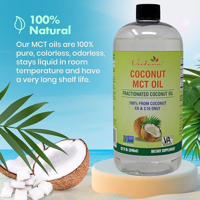 Verdana Food Grade MCT Oil 32 oz – for Keto Coffee, Unflavored Natural Oil Pulling Mouthwash & Massage - 100% Coconut Derived Fractionated Oil – Medium Chain Triglycerides C8 C10 –Non-GMO, Kosher