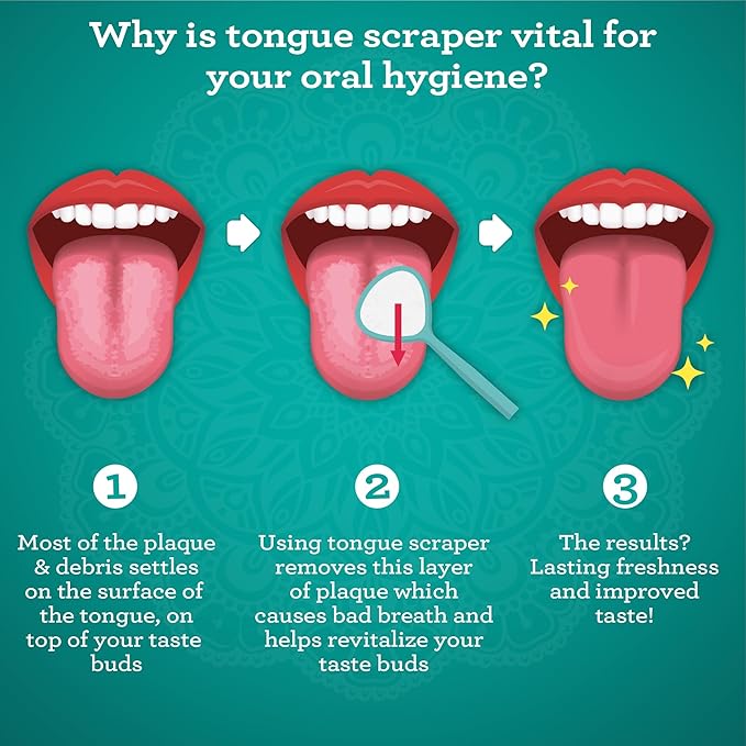 - HELPS PREVENT BAD BREATH: Experience fresher breath & enhanced oral hygiene with GuruNanda Tongue Scraper. Regular use helps remove debris, reduces bad breath, & helps improve taste by thoroughly cleaning the tongue's surface.