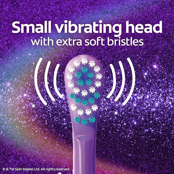 - A flat-laying handle makes it easy to apply toothpaste to this kids vibrating toothbrush without the brush rolling over or away