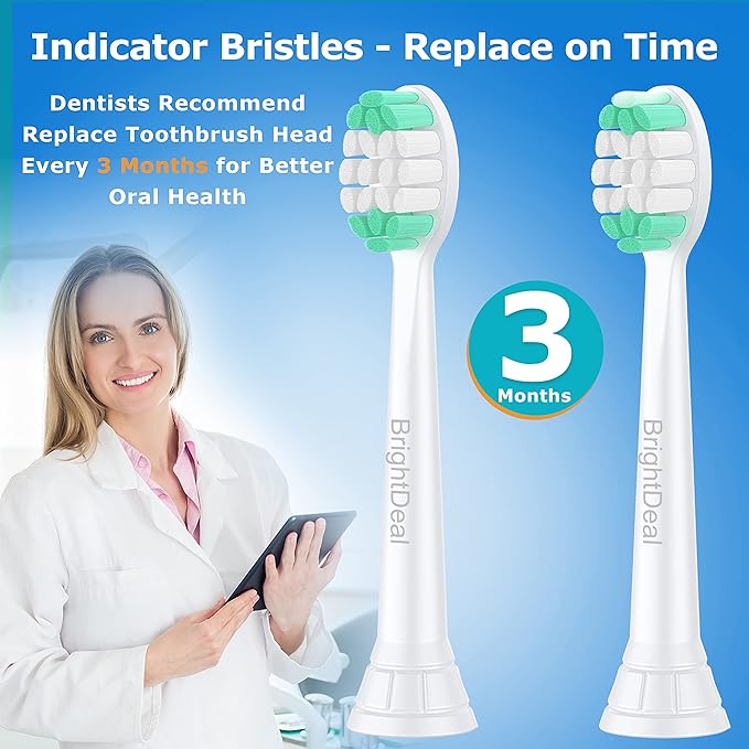 - ă3 Months Indicator BristlesăWith a tuft of indicator bristles planting at the top of replacement toothbrush heads can easily be seen when to replace your sonic toothbrush replacement heads, usually 3 months. Good for sonic toothbrush heads replacement