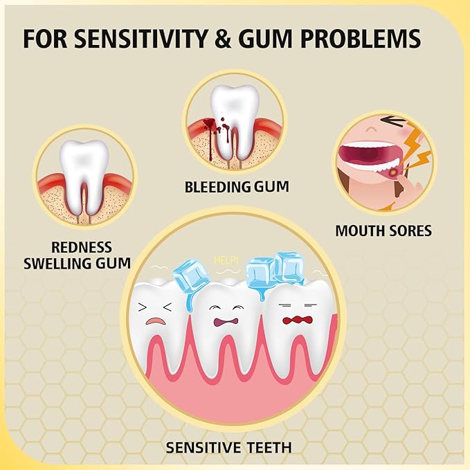 - Whitening Sensitive Teeth Toothpaste for Sensitivity & Gum Problems: Toothpaste for sensitive teeth, bleeding gums,redness & swelling gums, bad breath, mouth sores. Offers dual benefits by not only alleviating tooth sensitivity but also improving gum health.