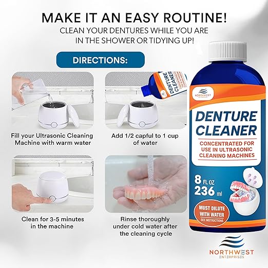 - DESIGNED FOR YOUR ULTRASONIC CLEANING MACHINE – Optimize your cleaning routine with this concentrate specially formulated for ultrasonic denture cleaners. It delivers consistent, effective results, ensuring your dental appliances are thoroughly cleaned with minimal effort