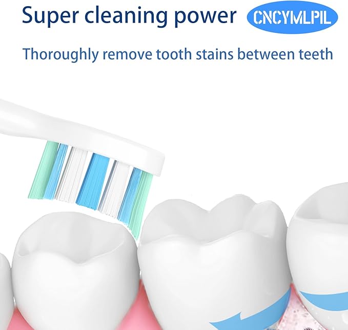- Comfortable and Gentle on Gums - Brushing should be effective, yet gentle on your gums. That’s why CNCYMLPIL replacement heads use premium DuPont bristles, known for their quality and reliability. These replacement heads feature a higher ratio of end-rounded bristles, providing an ideal balance between thorough cleaning and soft care. This design reduces the risk of irritation, ensuring a comfortable brushing experience every time. The blue indicator bristles gradually fade, signaling when it’s time to replace the brush head, so you always get the most out of your brush