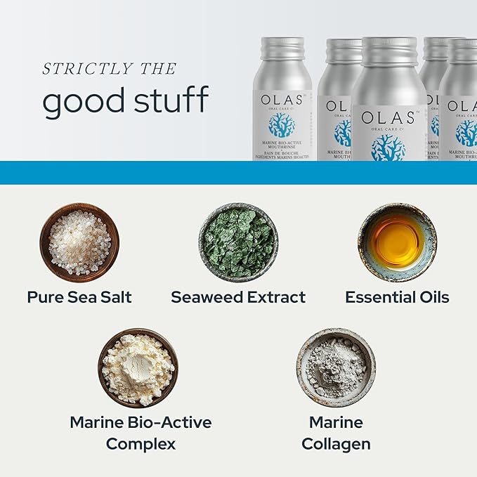 Olas Alcohol Free Mouthwash & Oral Rinse - Marine Bio-Active Mouth Rinse with Essential Oils & Antioxidants for a Healthy Oral Microbiome - Fluoride Free Natural Mouthwash (3 Count, 1 Fl Oz Each)