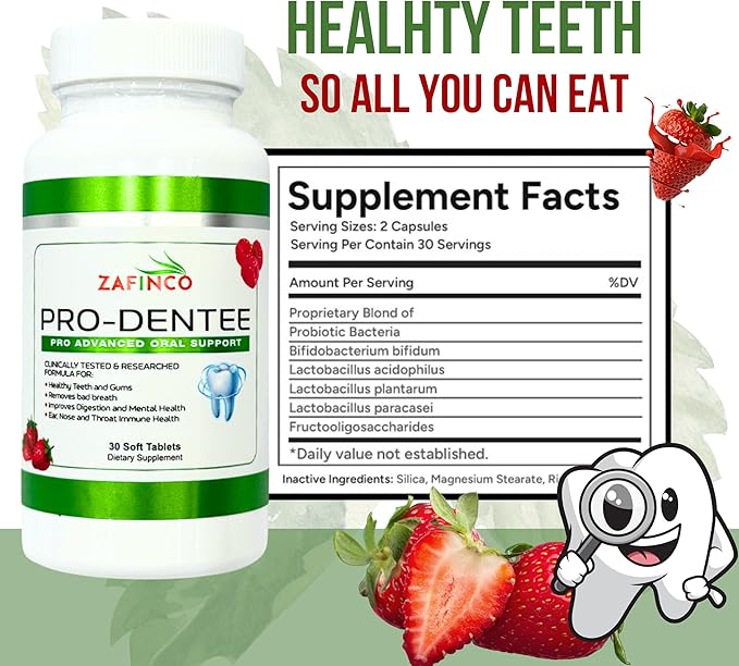 ZAFINCO-PRODENTEE Teeth & Gums Health. Advanced 3.5 Billion CFU Oral/Dental Probiotics for Reduce Mouth Bad Breath,Ear,Nose and Throat Health-Mint Flavored Soft Chewable Tablet, 30 Count-Made in USA