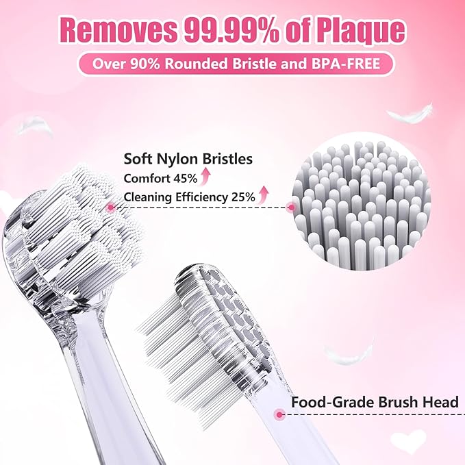 - Toddler Electric Toothbrush Specifically for Kids Aged 0-3: Babies start to sprout their first tooth around six months. This baby electric toothbrush features a soft LED light to help locate food residue and plaque. It is equipped with a 17,000 VPM motor (A+) and bristles with a roundness rate of over 90% (A+), protecting their mouths from cuts. It effectively prevents plaque and cavities caused by milk, with a cleaning efficiency 3.5 times higher than manual toddler toothbrushes.
