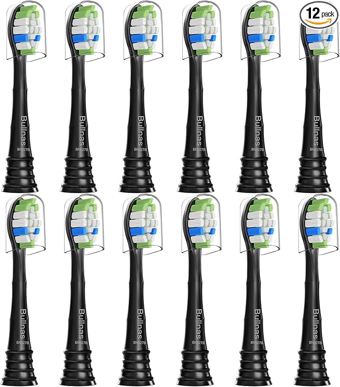 Bullnas Replacement Brush Heads Compatible with Philips Sonicare, Toothbrush Heads for Sonicare ProtectiveClean 4100 5100 5300 6100 Electric Toothbrush, 12 Count Ultimate Care Toothbrush Heads, Black