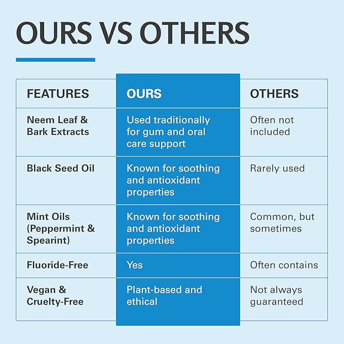 - Our first ayurvedic toothpaste is carefully crafted to fight microbes, support optimal gum care, and achieve minty breath. We have used real spearmint and peppermint oil and zero artificial flavors. In creating our Neem Toothpaste flouride free, we made sure to only use leaf and bark extracts for maximum results.