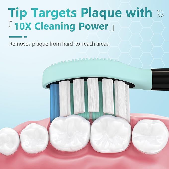 - [2-in-1 Tongue Cleaning]: This brush head includes a built-in tongue cleaner, allowing you to effectively remove tongue coating and further enhance your overall oral hygiene for fresh breath.