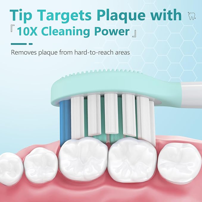 - [2-in-1 Tongue Cleaning]: This brush head includes a built-in tongue cleaner, allowing you to effectively remove tongue coating and further enhance your overall oral hygiene for fresh breath.