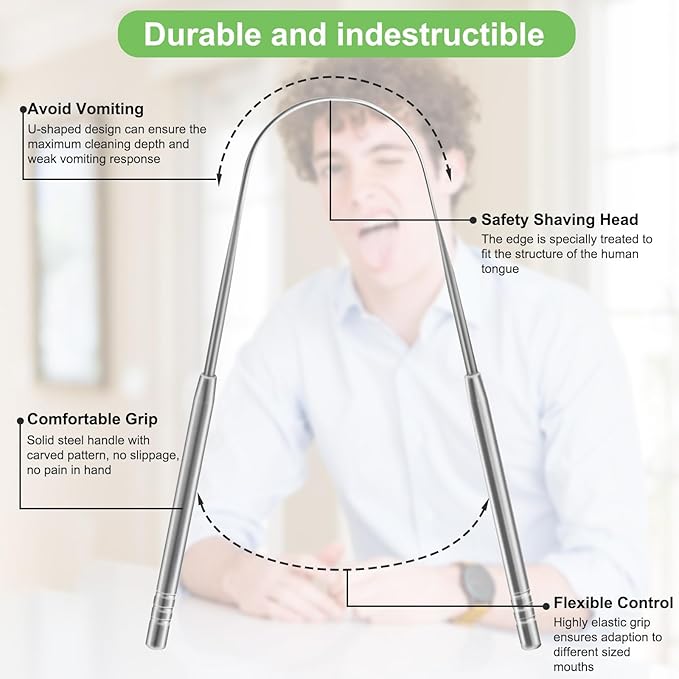 - Using these high-quality stainless steel tongue scrapers cleans your tongue in seconds. This effective tongue scraper for adults and children meets your needs.