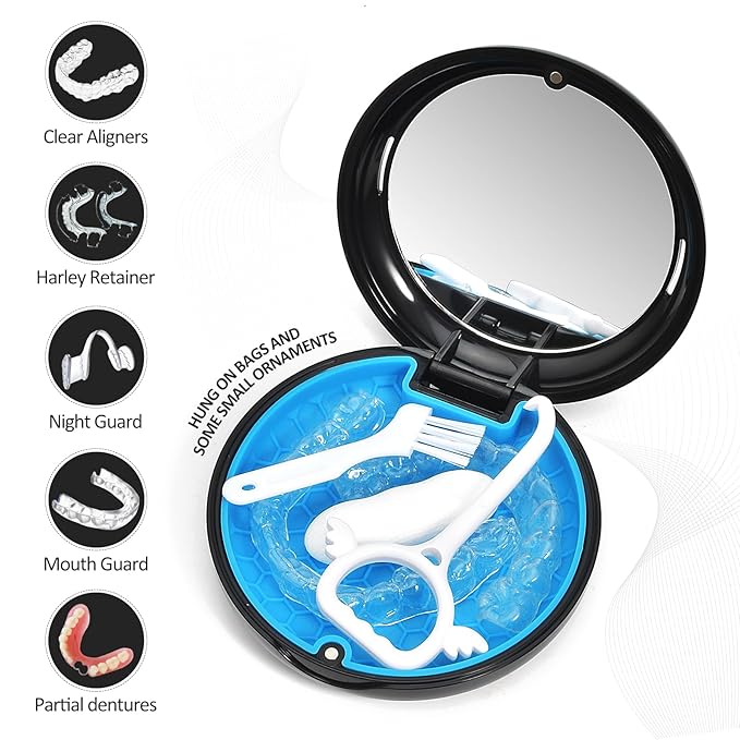 - ENOUGH INTERIOR SPACE - We went through a lot of research before designing this aligner case to ensure it fits all aligner brands It can even accommodate retainer accessories such remover tool, aligner chewies and Dental floss while storing your retainers.