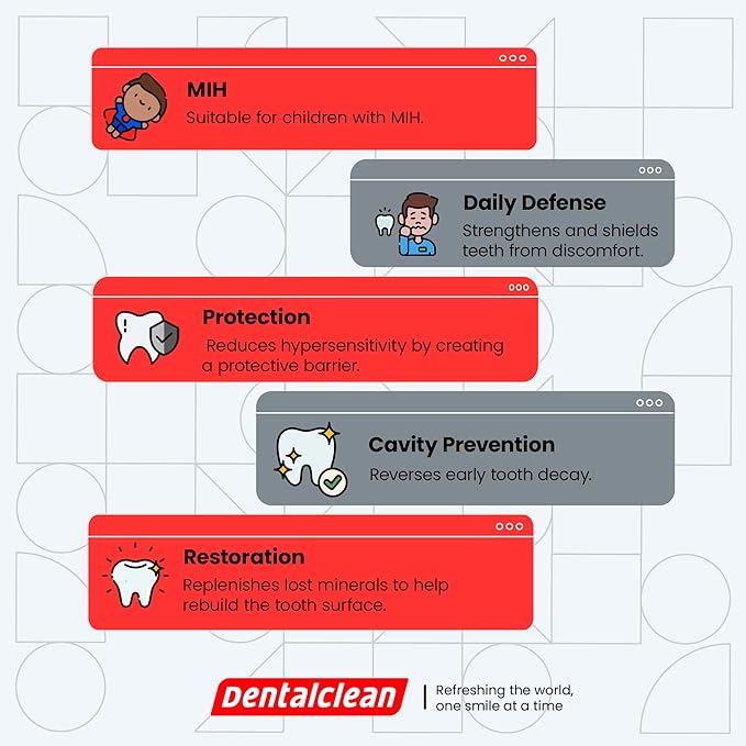 - 【EFFECTIVE ENAMEL REPLACEMENT】This toothpaste features the exclusive REFIX technology, which restores enamel minerals, reverses early-stage cavities and relieves sensitivity, making it perfect for children with MIH (incisor molar hypomineralization).