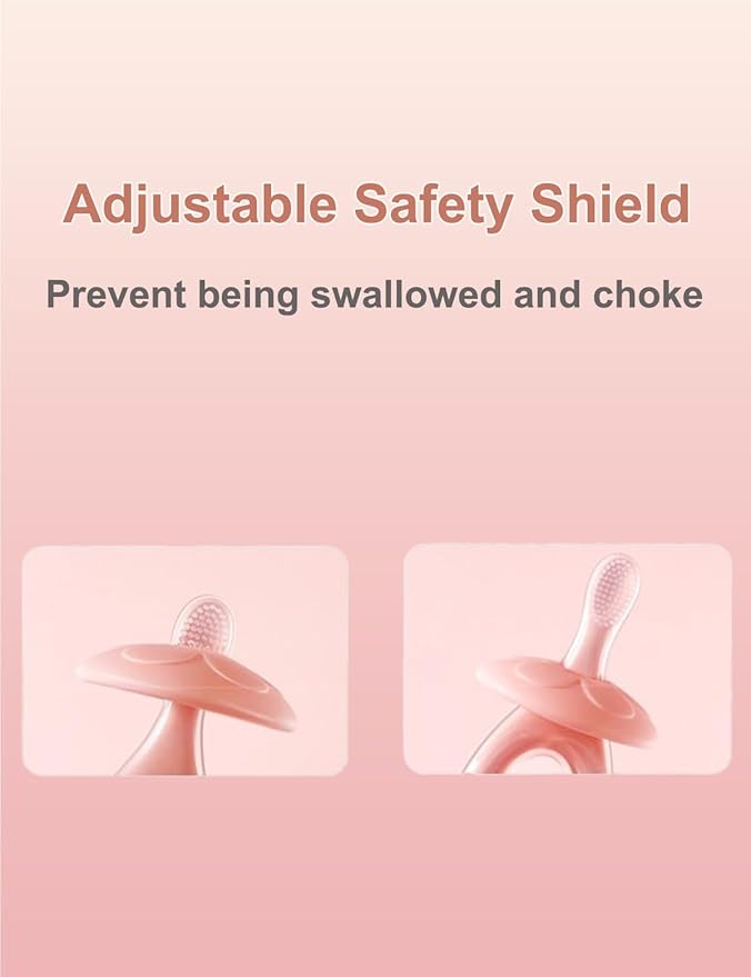 - 【SAFE AND ANTI-SWALLOWING】 Our infant toothbrush is equipped with an adjustable safety shield under the brush head to prevent being swallowed and choke. This is super suitable for being baby first toothbrush!!