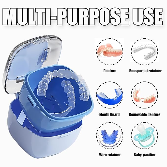 - MULTI-PURPOSE PRESENT -- The retainer case for cleaning is not only limited to cleaning denture cases and retainers but can also be used to store mouth guards, invisible braces, night guards, pacifiers, braces and bite protectors. Its elegant and luxurious design can also be used as a jewelry storage box and nail toolbox. It can be a present for your friends, colleagues, or elders.