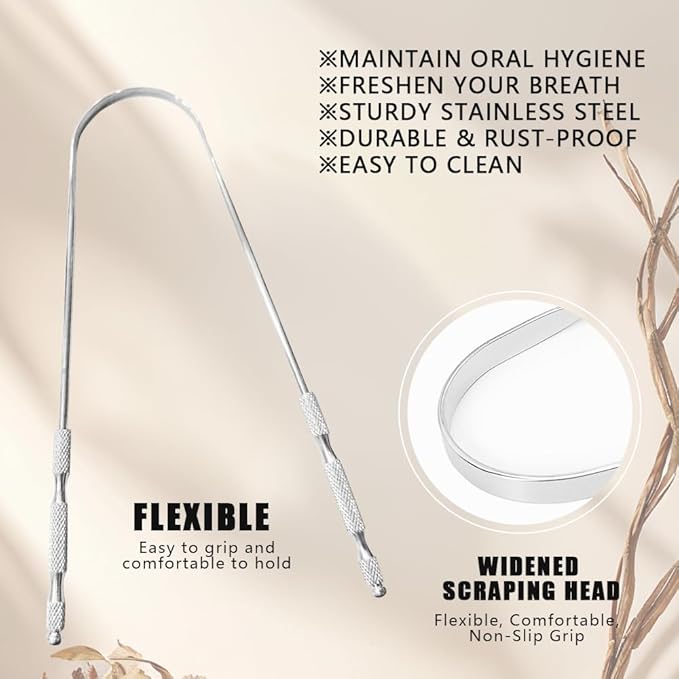 - Maintains Oral Hygiene: Easily scrapes away tongue coating to reveal a cleaner, fresher tongue surface