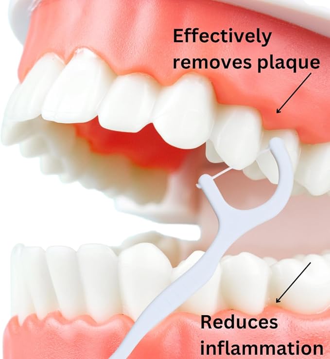 - 🦷 DUAL-PURPOSE ERGONOMIC DESIGN – Features double-string floss for a deeper clean between teeth and a built-in plaque remover. A convenient all-in-one tool for adults and children, promoting fresher breath and cleaner teeth.
