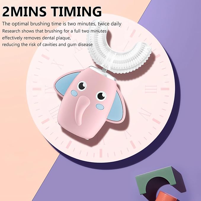 - Ergonomic U-Type brush head: Suitable for the shape and mechanics of children's teeth structure.Precision-engineered to fit the smaller mouths of kids aged 2-12, ensuring comfortable and thorough cleaning with each use.
