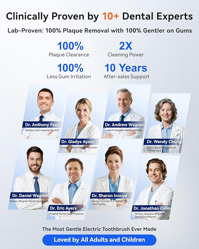 - [Gum Sensitive Savior]:12° micro-angle sweep vibration, RANVOO electric toothbrush is different from traditional toothbrushes, it has a built-in "intelligent speed control brain" DC variable frequency motor, which can switch between three modes: gentle gum protection mode, strong cleaning mode, whitening mode. Follow brush 2 minutes & 30 seconds zone switching timer alerts to change brushing zone. After testing, it can protect the gums well during brushing, avoiding various problems such as gum bleeding and even gum atrophy. It is definitely the best choice for people of all ages with sensitive gums.