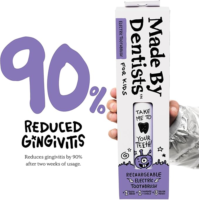 - RECHARGEABLE ELECTRIC TOOTHBRUSH – Built for toddlers and kids ages 2+, with a rechargeable battery, ergonomic grip, and a small soft brush head sized for little mouths. Gentle on gums but powerful on plaque, making it a dentist-recommended kids toothbrush.