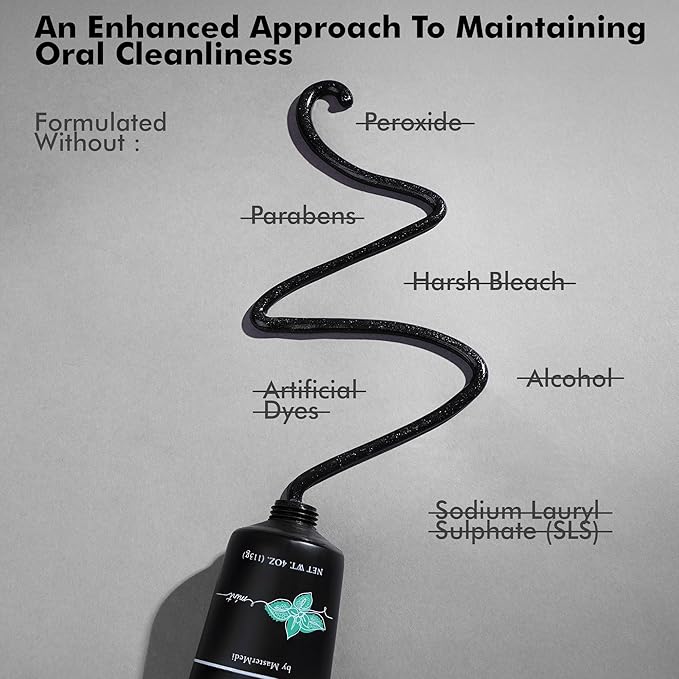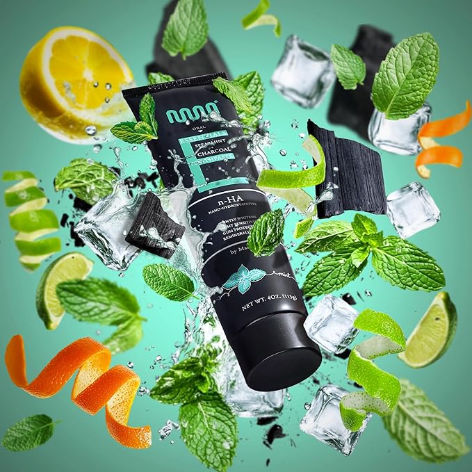 MasterMedi Nano Hydroxyapatite Toothpaste (Inspired by 10% nHA Formulas), Fluoride-Free, Charcoal Whitening, Sensitive Teeth Care, Enamel Support, SLS-Free, Xylitol, Citrus Mint, 4 Oz (Pack of 1)