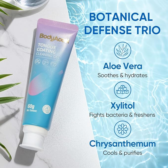 - [Fresh Breath]: BodyAccel's tongue cleansing gel, paired with an ergonomic brush, gently removes residue and buildup on your tongue to help eliminate odor and leave your mouth feeling fresh all day.