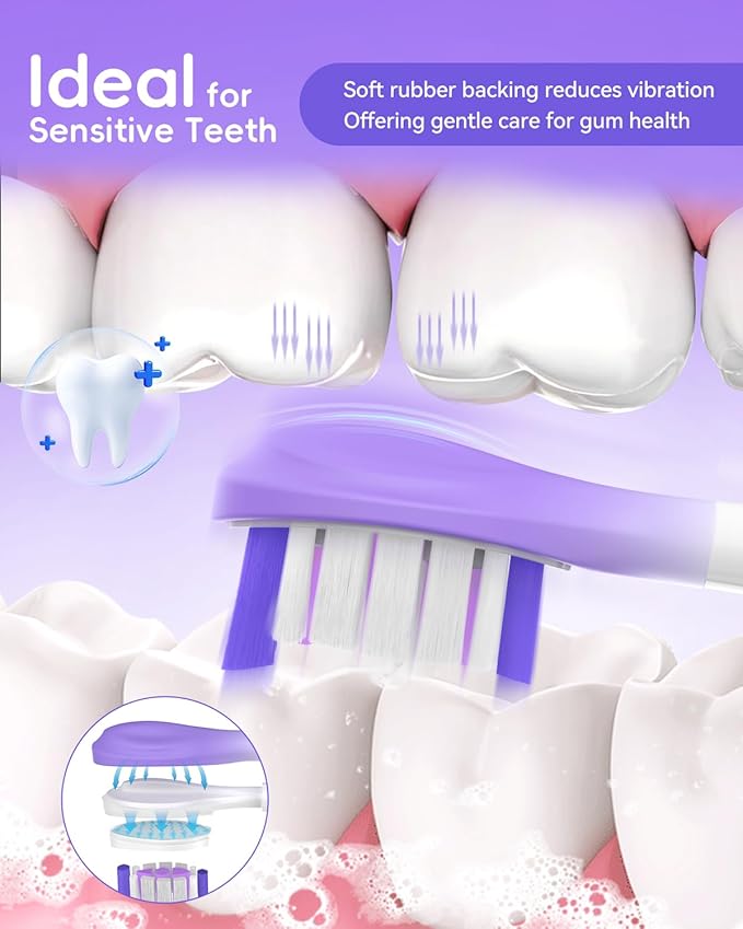 - 【Gentle on Gums – Soft Rubber Cushioning】The soft rubber backing absorbs vibrations, offering a gentle brushing experience for those with sensitive teeth and gums. The TPE air cushion reduces vibration impact, providing superior gum protection and comfort. Perfect for those seeking a gentle, effective clean.