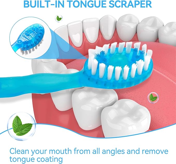 - 【HIGH-QUALITY BRISTLES & TONGUE SCRAPERS】The mini multifunctional toothbrush bristles are made of nylon and have strong cleaning power. Brushes can effectively remove dirt from teeth, Including those with braces. The tongue scraper can clean the tongue's surface and improve the overall oral condition