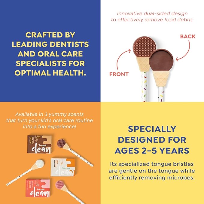 - Toothbrushes Don’t Clean Tongues! Toddlers need specialized care—our patented, dual-sided Single Scoop Tongue Scraper features soft tongue bristles on one side to comfortably clean deep crevices, and a scraper side to remove odor-causing buildup, debris, and fight bad breath. Perfect for sensitive mouths, early oral care habits, and daily freshness.