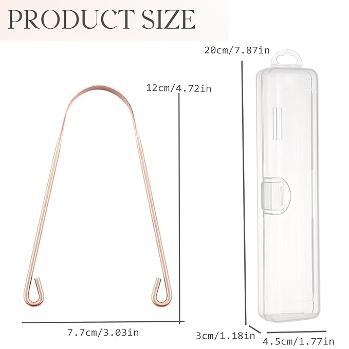 - Tongue Scraper Set: Come with 2 Copper Tongue scrapers, 3 soft silicon tongue cleaners with 3 different color and handy travel case.