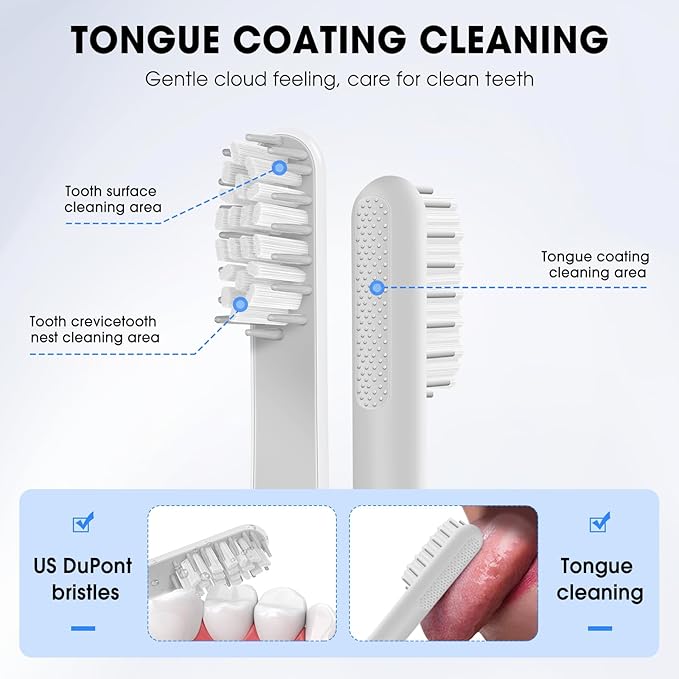 - Toothbrush replacement heads are made with DuPont bristles, gentle on your teeth and gums, ensuring effective cleaning without causing discomfort