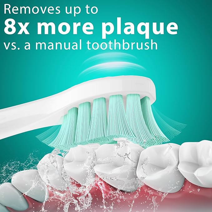 - Effective Plaque Cleaning: Guhiwuk replacement brush heads effectively up to remove 8X more plaque than a manual toothbrush. Special s-shape curved of the replacement brush heads is design for better fits the shape of your teeth and effective cleans the gaps and hard-to-reach corners of your teeth, perfectly suited for those wishing to ensure optimal plaque removal and white teeth, bringing comfortable brushing experience.