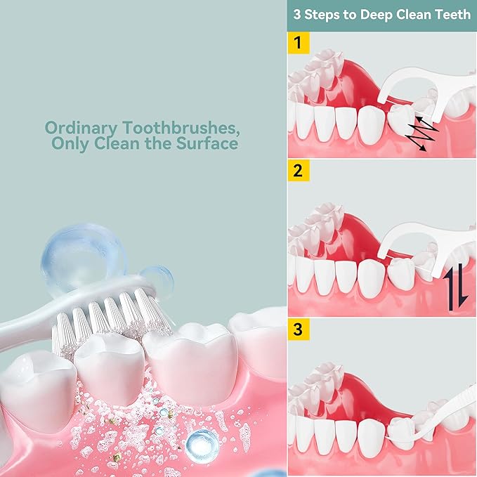 - NON-BREAKABLE FLOSS: EFFORTLESS CLEANING. Durable non-breakable floss slides smoothly to remove plaque, protecting gingivae without snapping. Works for tight gaps and wide spaces—ideal for effective daily care