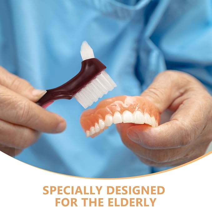- Dual-Head Design for Effective Denture Cleaning: This denture toothbrush features a dual-head structure that reaches both inner and outer surfaces of false teeth, including narrow gaps, ensuring comprehensive cleaning and enhanced oral hygiene for denture wearers