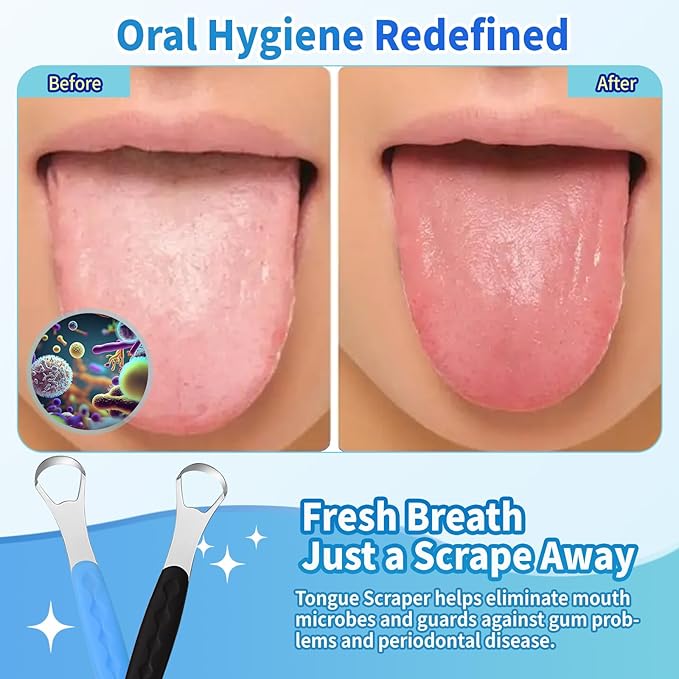 - High-Quality Material & Easy Cleaning: Crafted from medical-grade stainless steel, this tongue Scrubber is highly durable and resistant to rust, ensuring long-term use. It's also easy to maintain—just rinse with water mixed with a cleaning tablet or lemon for a quick, hygienic clean