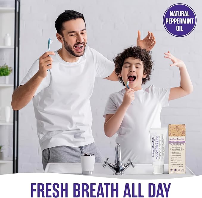 SprinJene Fluoride Free Toothpaste - Patented Natural Toothpaste with Black Seed Oil & Zinc - Made in The USA - Vegan Non Fluoride for Fresh Breath Preservative Free (1 Pack)