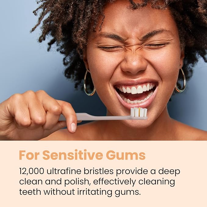 - GENTLE AND SOFT - Feel the difference between our gentle micro-bristles versus traditional nylon bristles. Our toothbrush doesn’t irritate gums, while still providing a deep clean and polish. Ideal for those with sensitive teeth and gums.