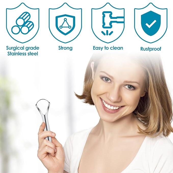 - [Fresh Breath] This stainless steel tongue scraper helps you move white stuff from your tongue, keeping your tongue pink and your breath fresh, giving you more confidence!