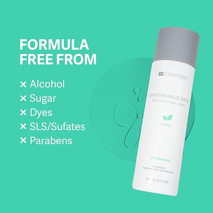 - [PROTECT YOUR ENAMEL]: The CariFree Maintenance Rinse contains 0.05% sodium fluoride, which helps prevent tooth decay and white spots. Evidence shows that fluoride strengthens your teeth and aids in the prevention of dental cavities.